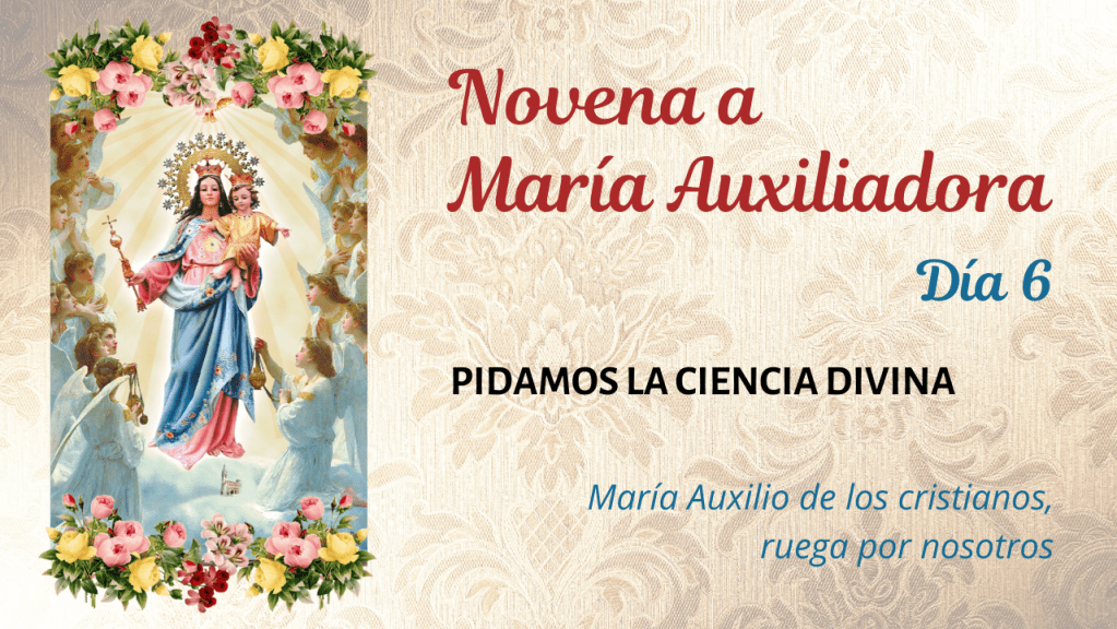¡Oh Virgen Auxiliadora, Madre de la verdadera Sabiduría, Esposa del Espíritu Santo!, Tú que eres esplendísimo faro de luz eterna, concédeme la gracia que te imploro…, y envía a mi alma un rayo de luz celestial. Sí; yo te pido, oh Madre, aquella ciencia divina que edifica, y que es compañera de la caridad y maestra de la humildad; aquella ciencia que hará que me conozca a fondo a mí mismo y que me eleva al amor de Dios; aquella ciencia que despierta la contricción en mi corazón y me excita a detestar mis culpas pasadas y presentes. ¡Oh María Auxiliadora!, obténme este don del Espíritu Santo, para que se perfeccione en mí la fe y yo camine seguro por la senda del Paraíso. Amén.